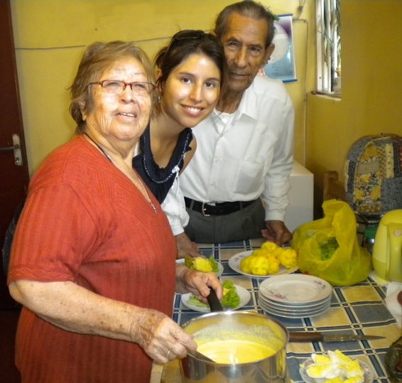 Là, c'est moi (il y a une dizaines d'années) en cuisine entre mes grands-parents péruviens à Arequipa : On prépare un plat traditionnel délicieux la "papa la huancaina".